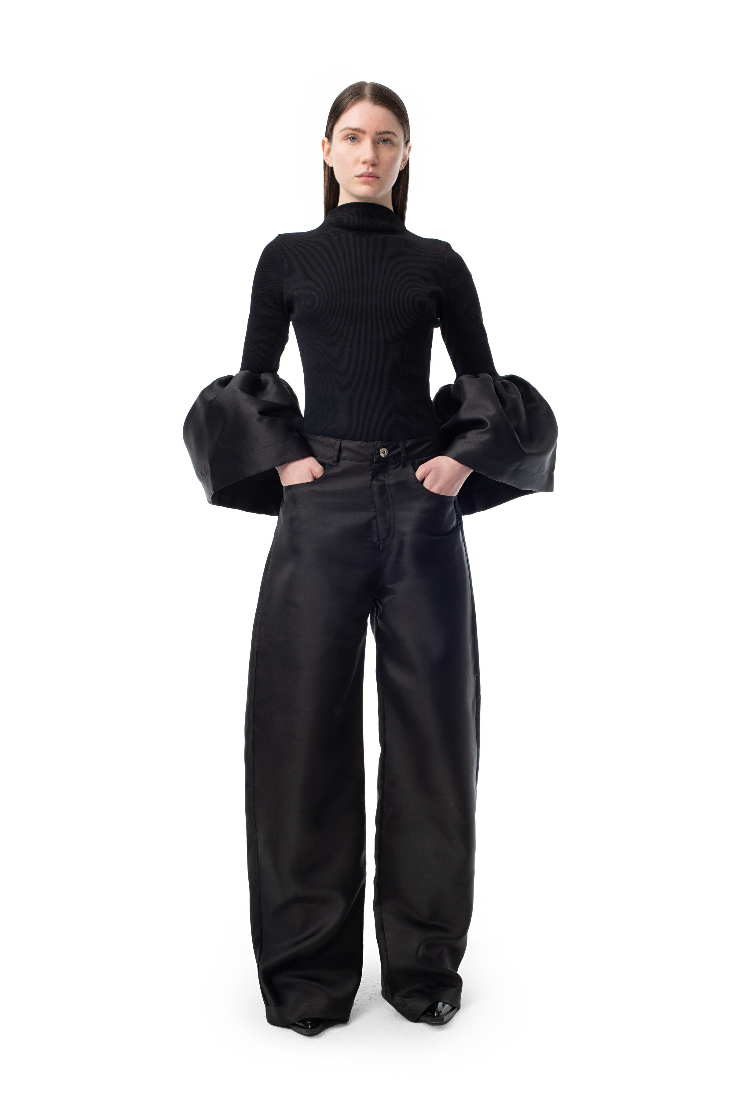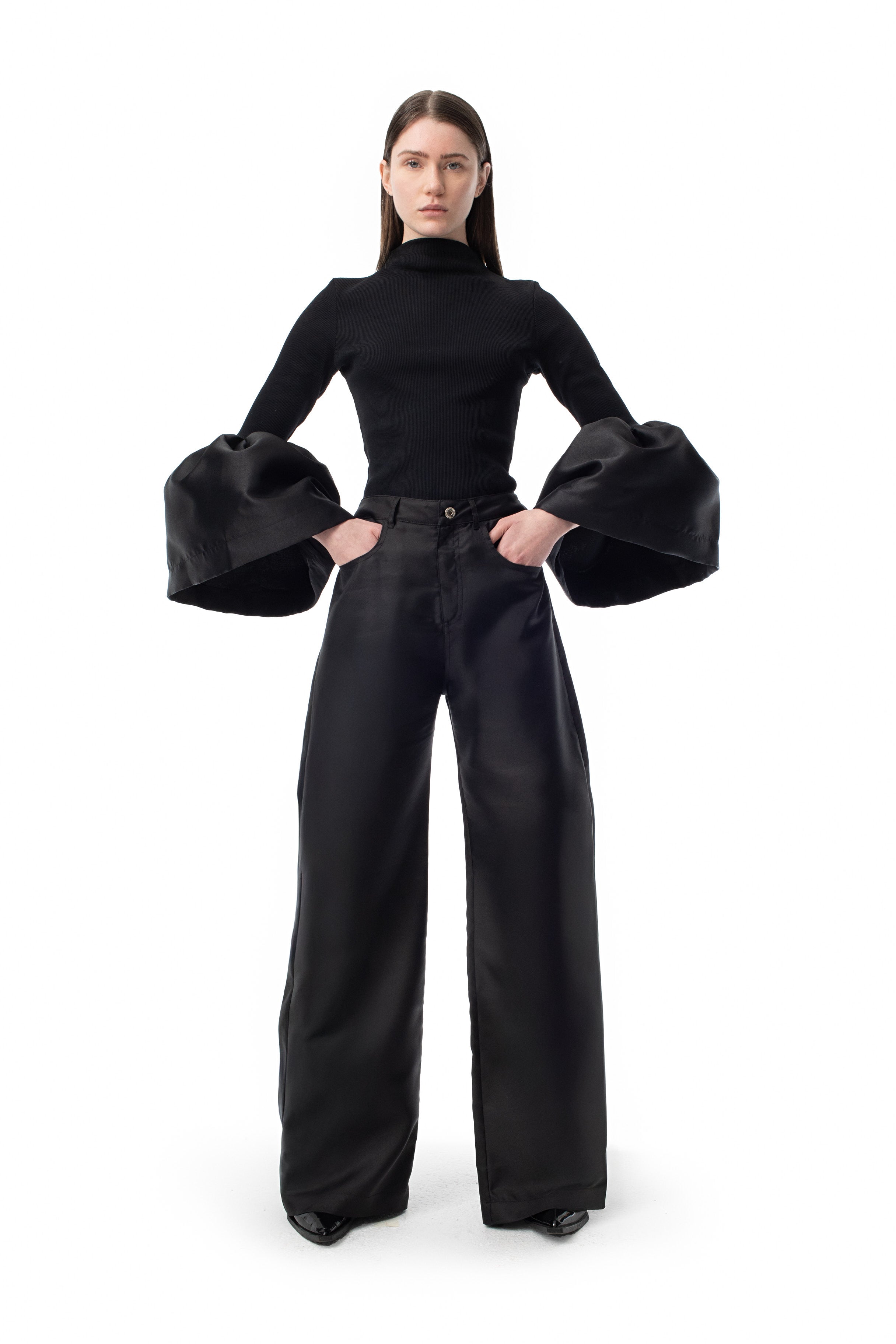 BLACK TURTLENECK PUFF SLEEVE TOP