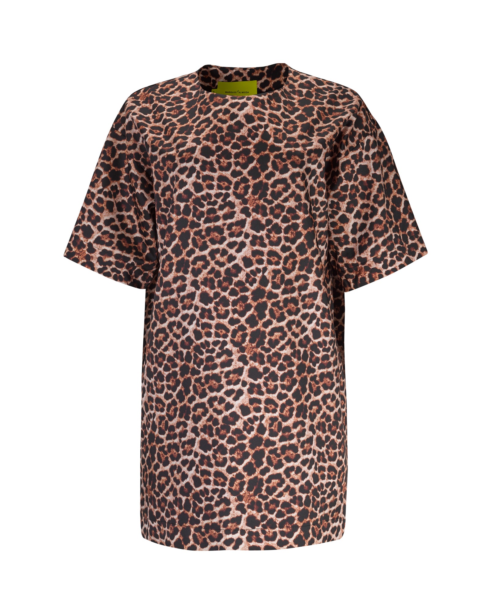BONDED SATIN T-SHIRT DRESS IN LEOPARD PRINT