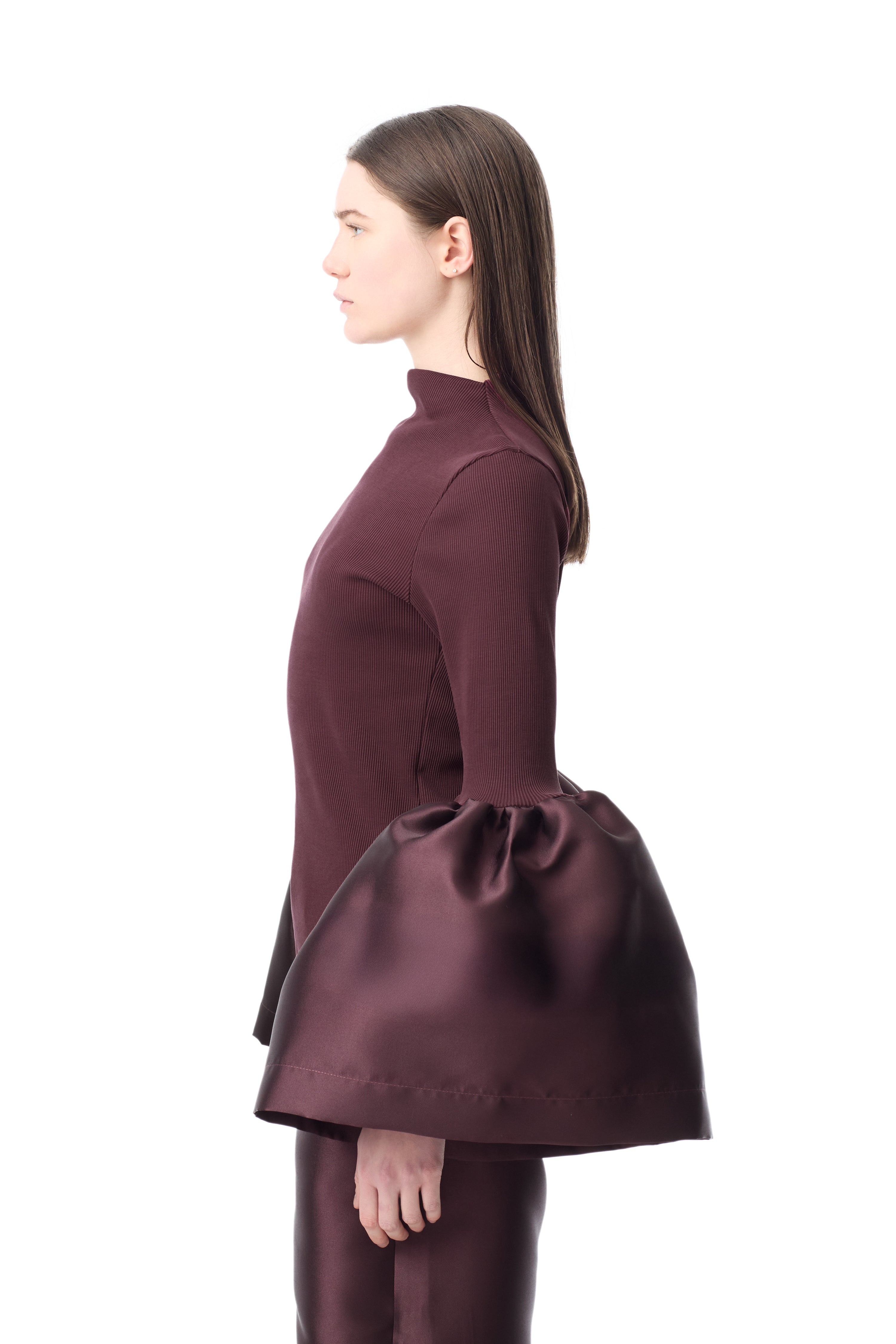 BURGUNDY TURTLENECK PUFF SLEEVE TOP