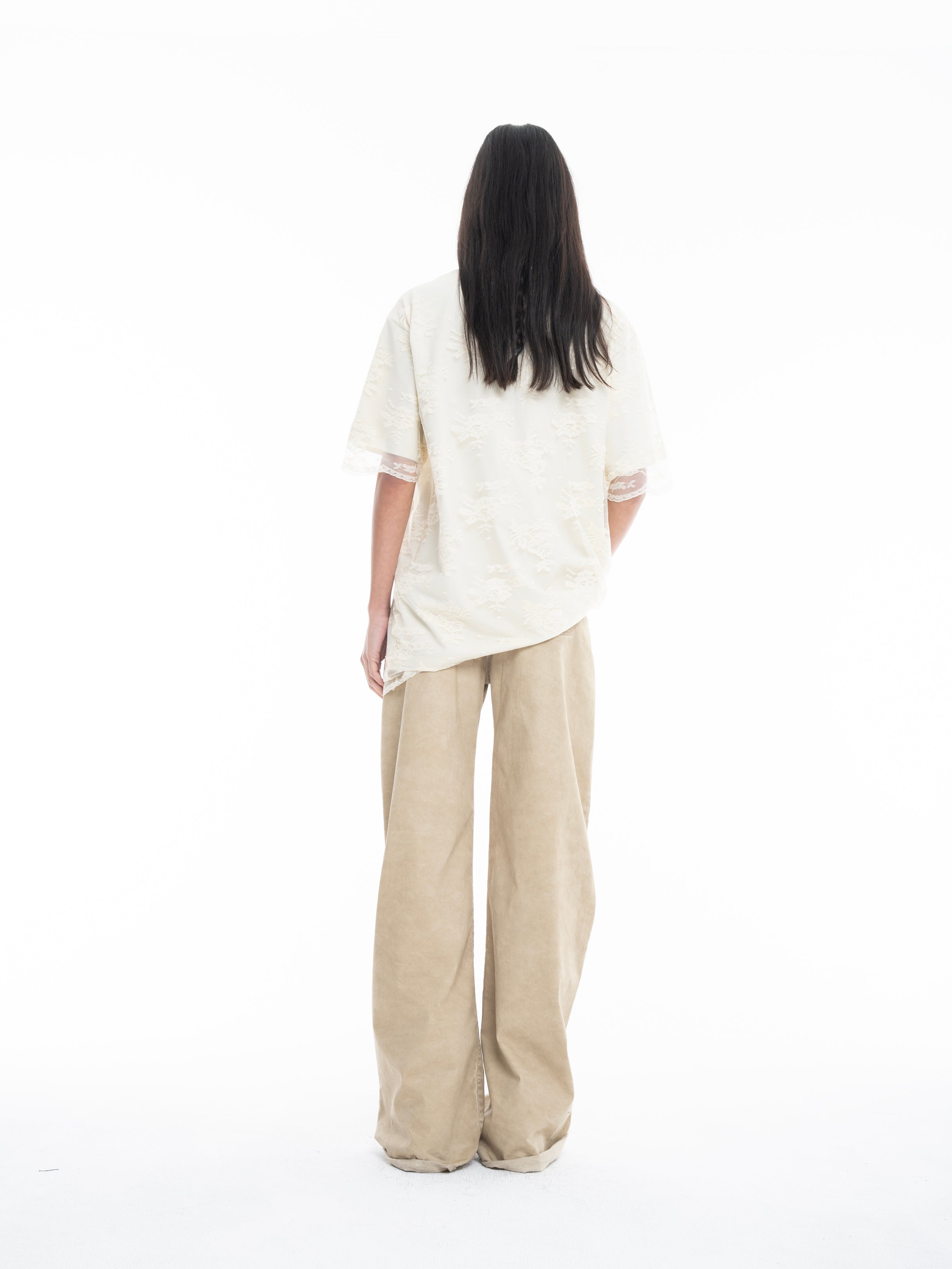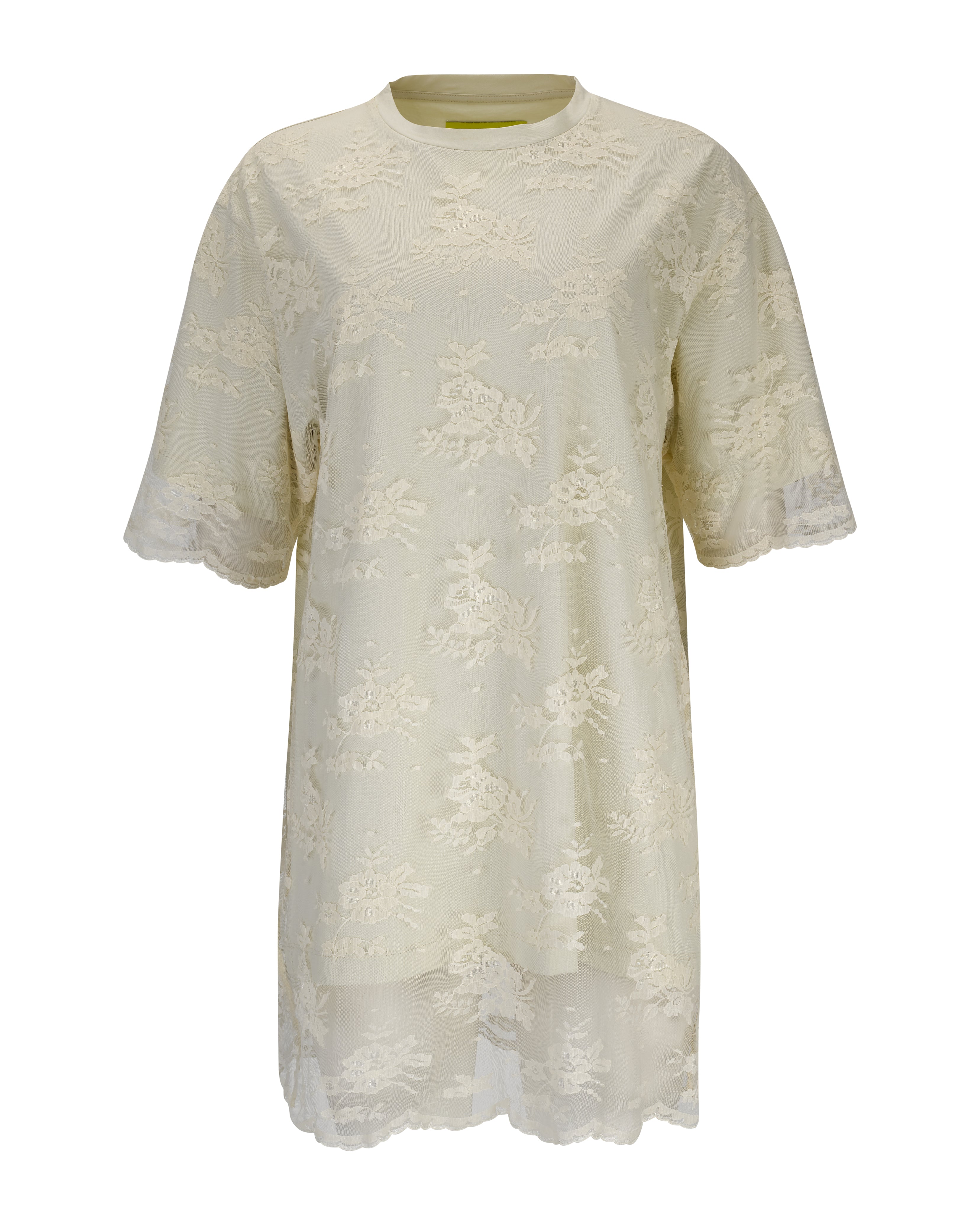 OFF-WHITE RELAXED FIT T-SHIRT WITH LACE OVERLAYER