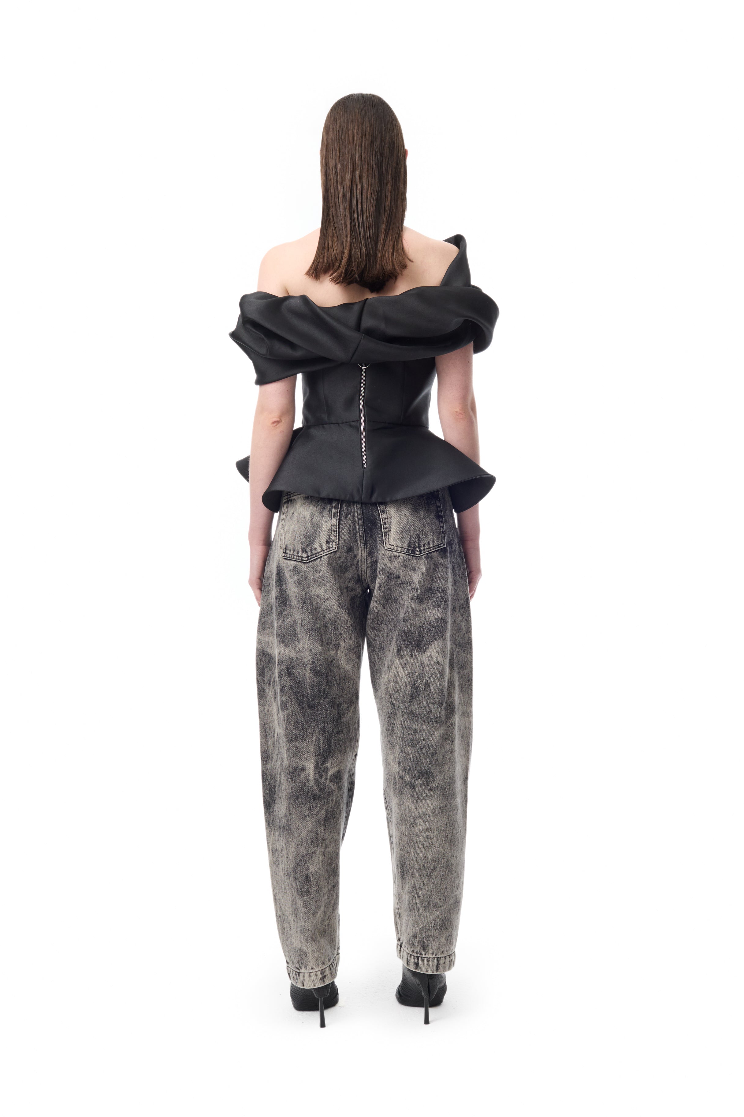 DENIM GREY ACID WASH BARREL JEANS