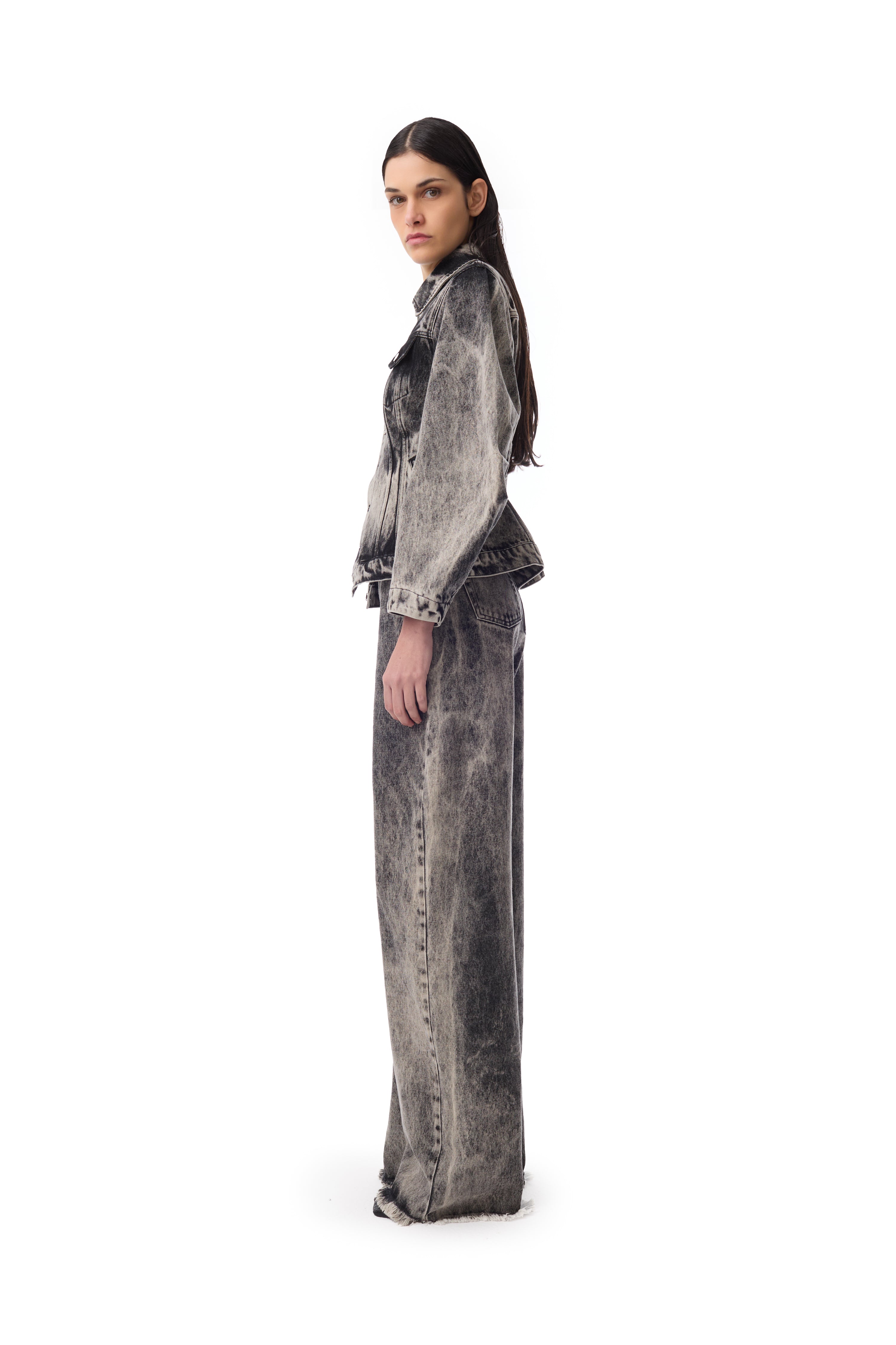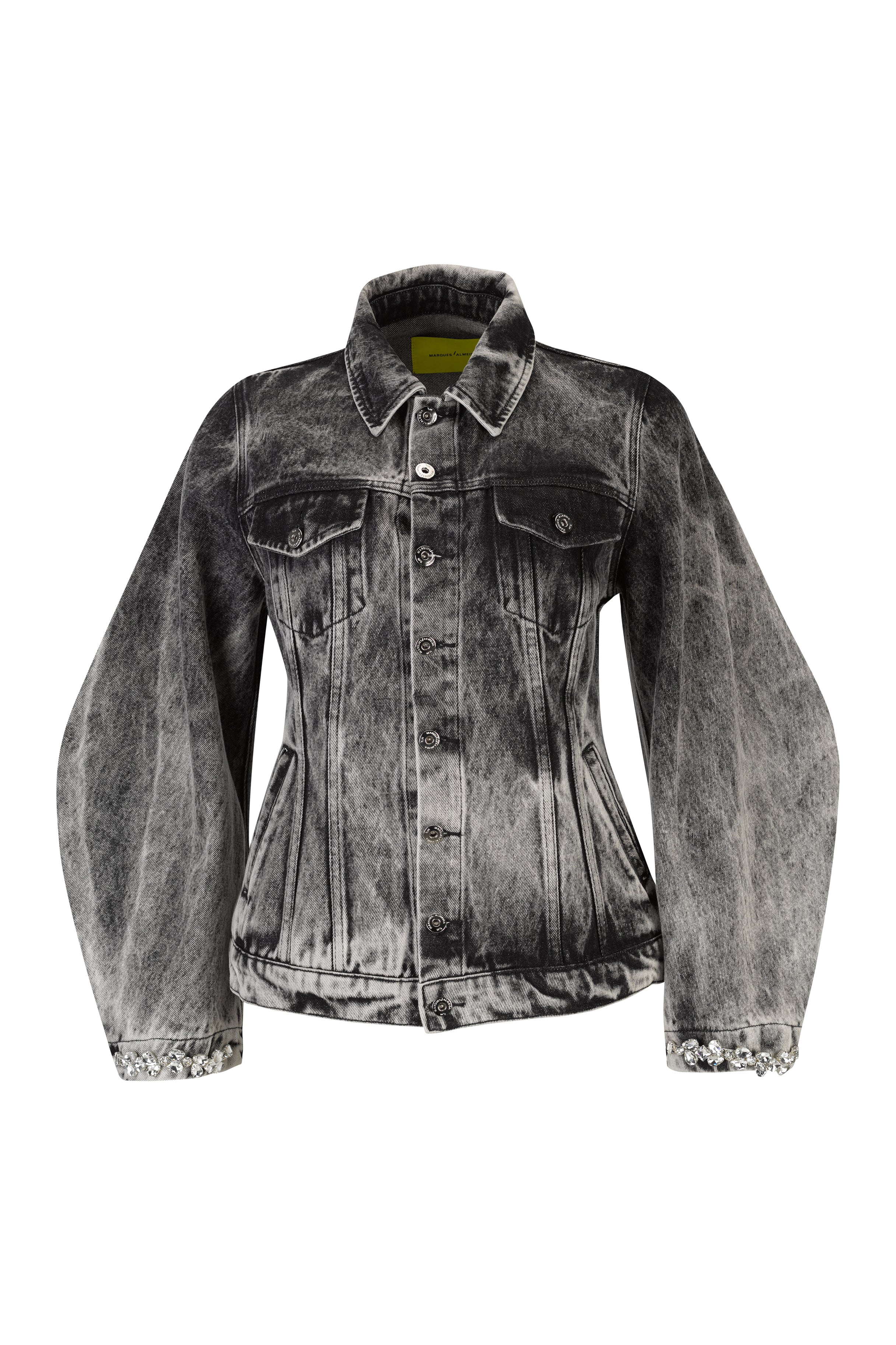 DENIM GREY ACID WASH EMBELLISHED FITTED JACKET