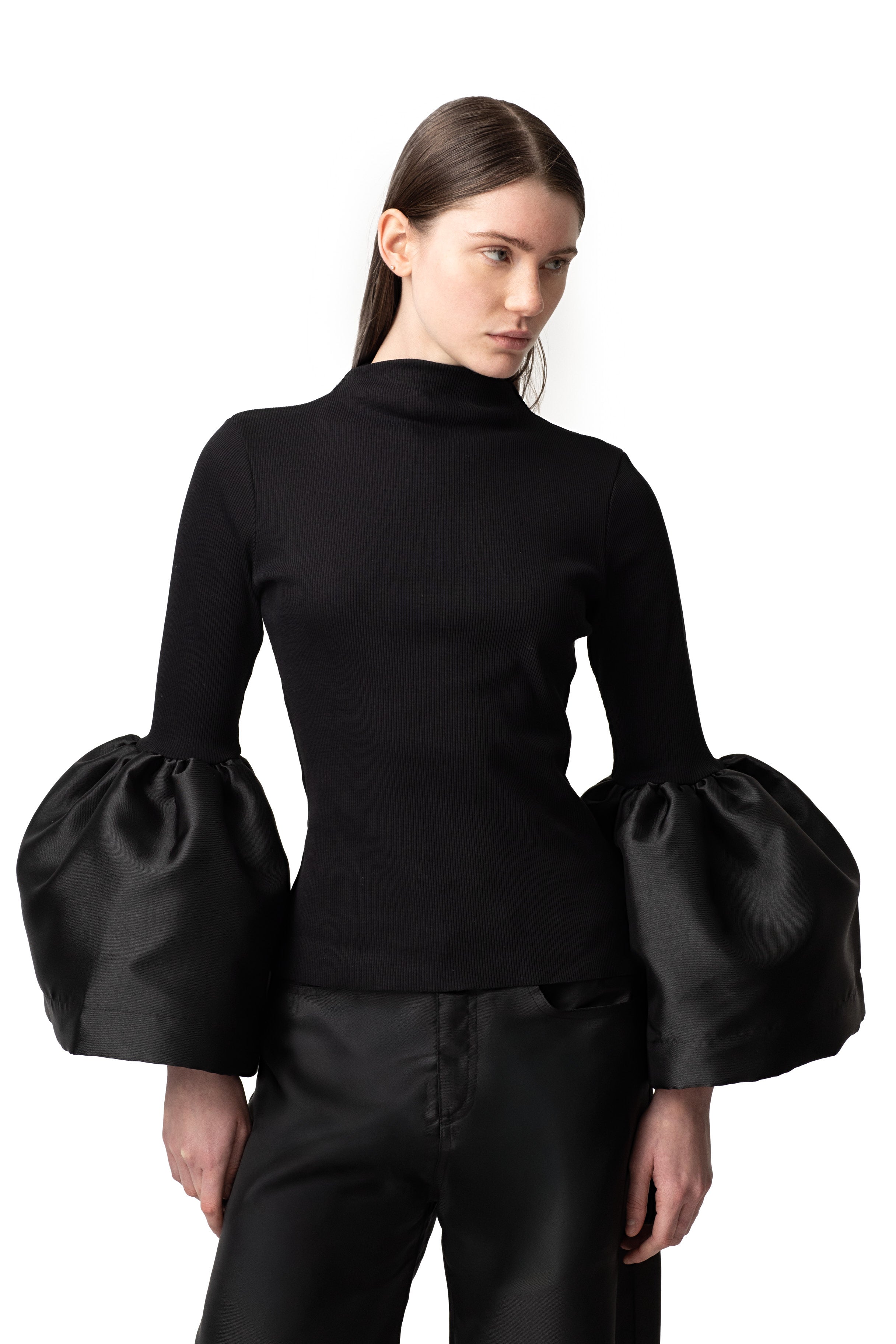 BLACK TURTLENECK PUFF SLEEVE TOP