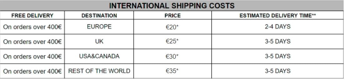 **Delivery times are estimated as sometimes with the orders, there may be delays caused by customs outside our control. Severe weather, natural disasters, pandemics and other conditions beyond our control can occasionally disrupt the courier services.