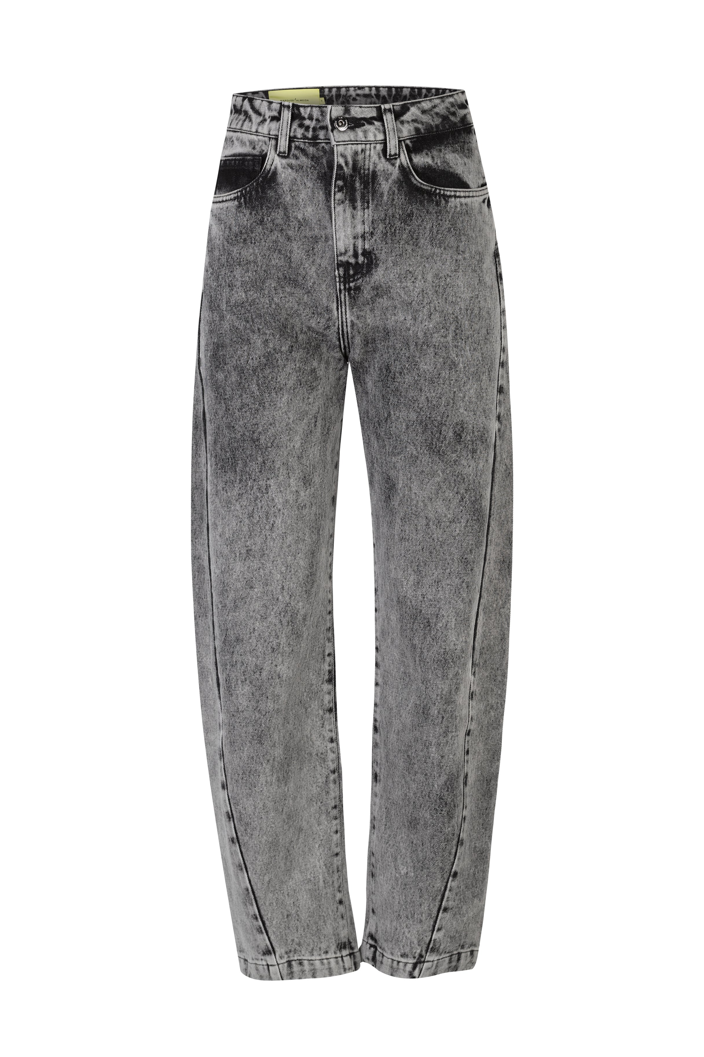 Make a statement with these grey acid wash barrel jeans, featuring a relaxed, curved-leg fit and vintage-inspired finish. Bold, comfortable, and effortlessly cool.