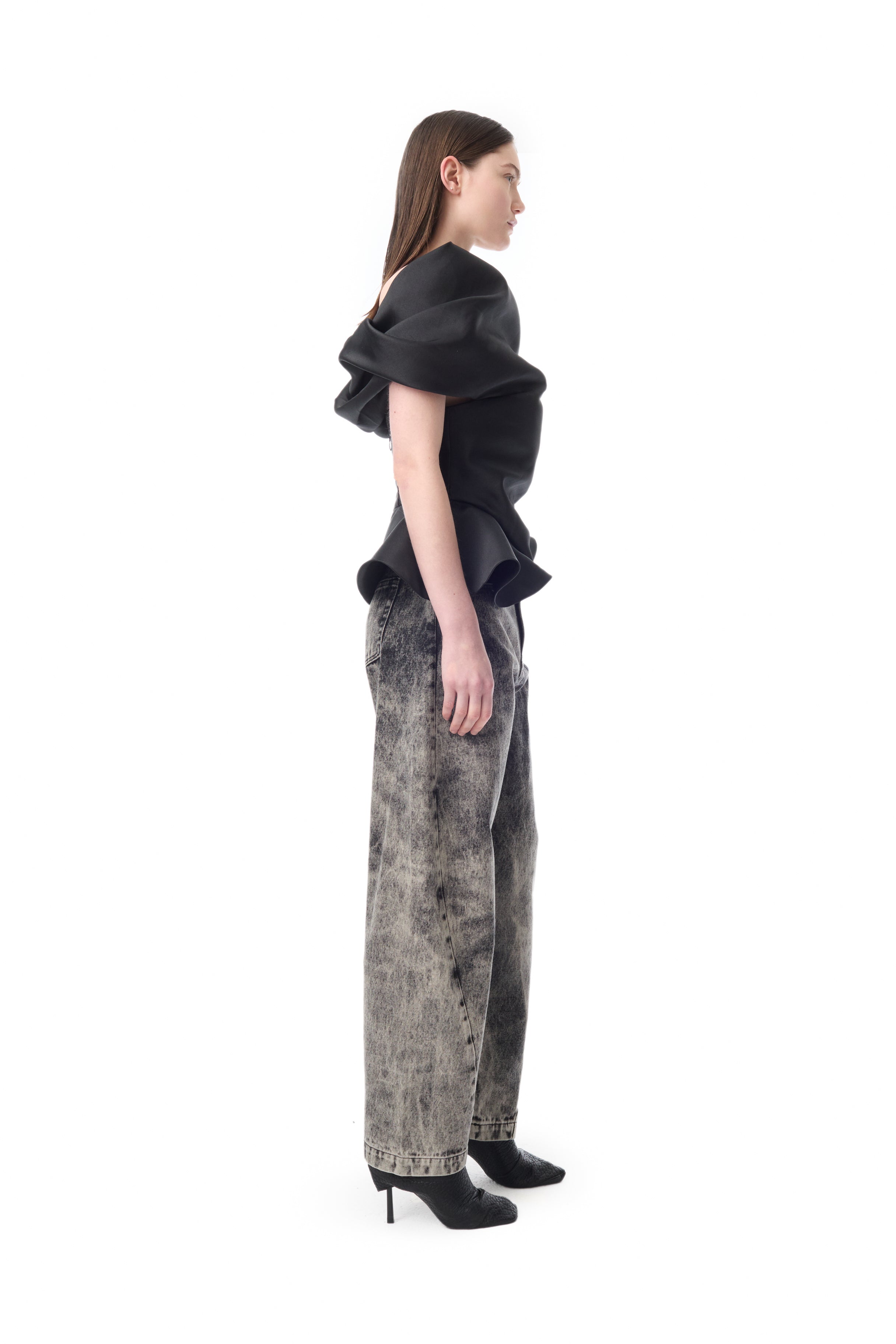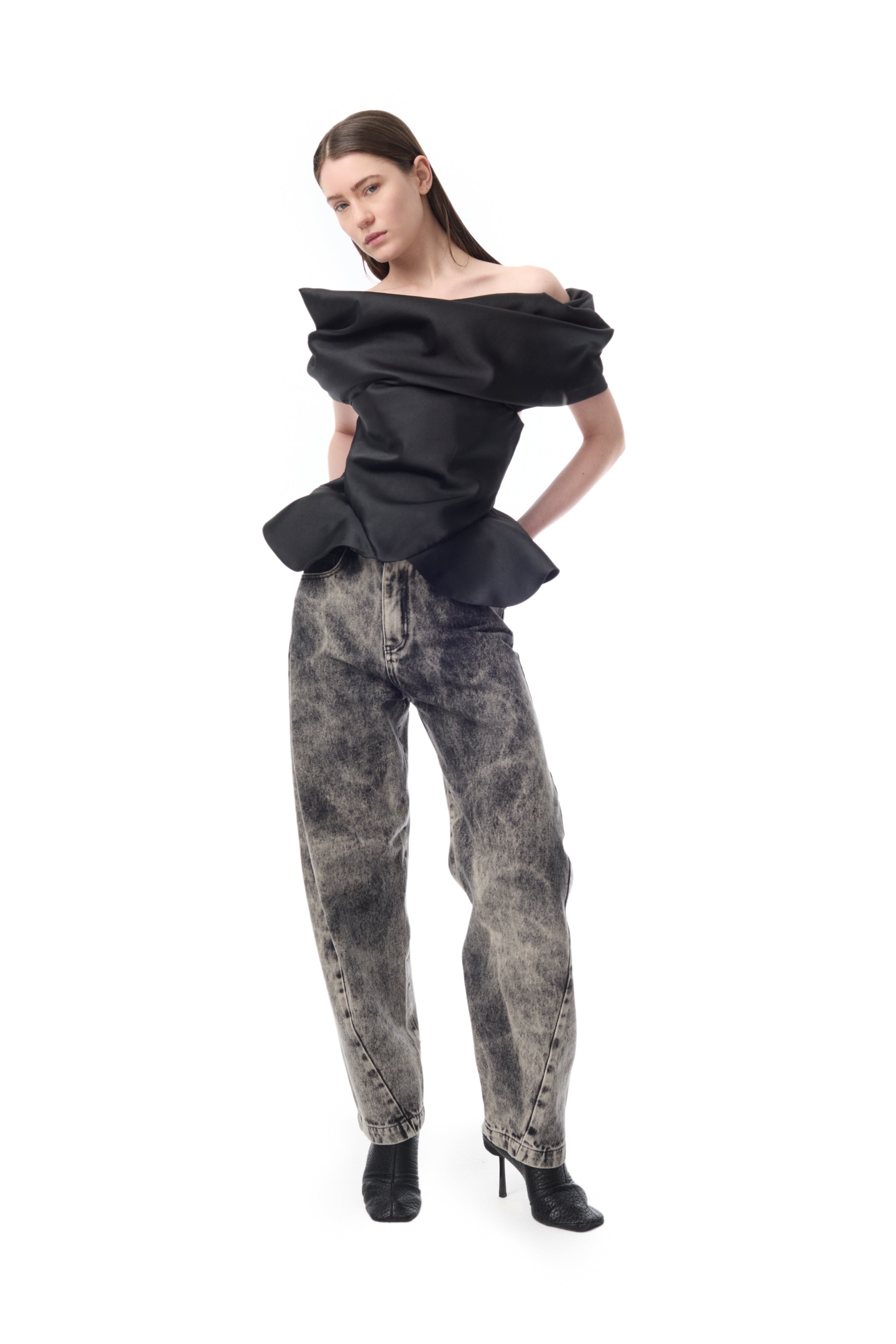 DENIM GREY ACID WASH BARREL JEANS